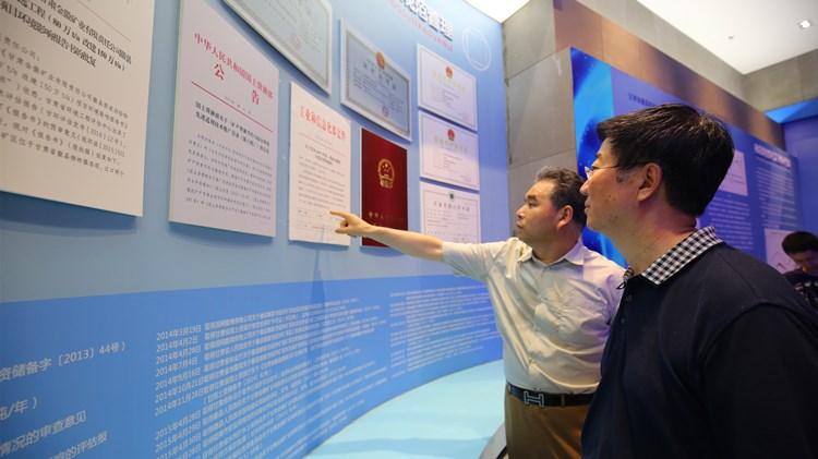 王璽玉一行先后深入員工活動中心、科技指揮中心、礦工服務樓、公寓樓等地調研。在員工活動中心,當看到豐富多彩的員工文化活動時,王璽玉談到:從員工充滿自信的笑臉上,我們已感受了金徽股份對員工無微不至的關心和關愛,也看出了員工的敬業精神和幸福生活。在融礦業文化與科普宣傳為一體的展覽館,王璽玉仔細聽取了資源儲量、勘察歷程、建設規模、工藝設計、安全環保、企業文化等方面的情況介紹,當看到項目奠基儀式的照片時,王璽玉感慨道:時隔五年,我再一次來到了這里,你們以超前的理念思維將一片荒山建成了一座“世界一流”礦山,超出了社會對礦山企業的傳統看法,我感到十分欣慰。在礦工服務樓,王璽玉通過監控查看了采礦提升及運輸系統、了解了采選礦生產工藝和井下工人的作業情況,當看到部分人員正在享受公司免費提供的搓澡和修腳場景時,王璽玉說道:金徽股份通過一系列實實在在的行動,確實為礦山工人找回了應有的尊嚴和尊重,讓他們成為了新時代最受尊重和最享有幸福感、歸屬感的礦業人。希望企業能夠堅持和推廣這些好的做法,早日實現既定目標,為社會經濟發展做出更大貢獻。